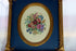 This is an exceptionally beautiful piece of needlework art, in an equally beautiful antique carved wood frame. Both are in excellent, antique condition. Frame is painted gold and the border outside of the oval cutout has been painted a teal blue.